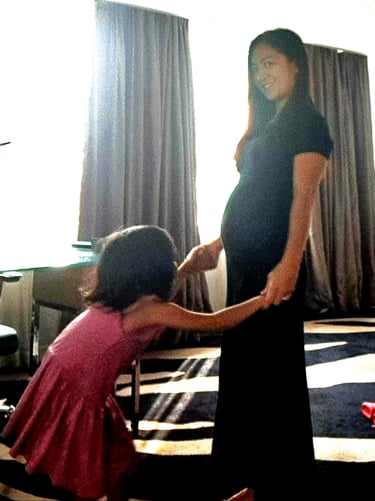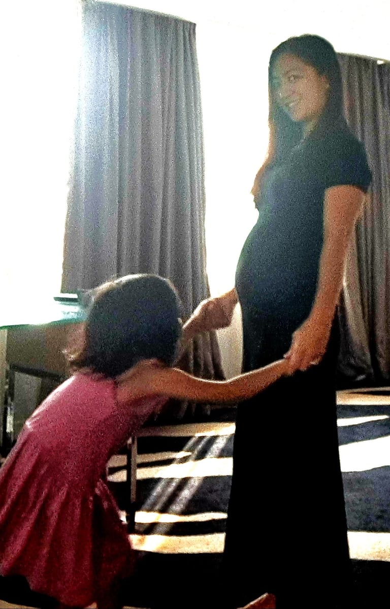 As the baby bump started to show, Elyza started to show interest limit curiosity in that growing bump as I would regularly tell her about me having a baby growing in me tummy. She would turn around me, discreetly touching my tummy with her hands or her cheeks.