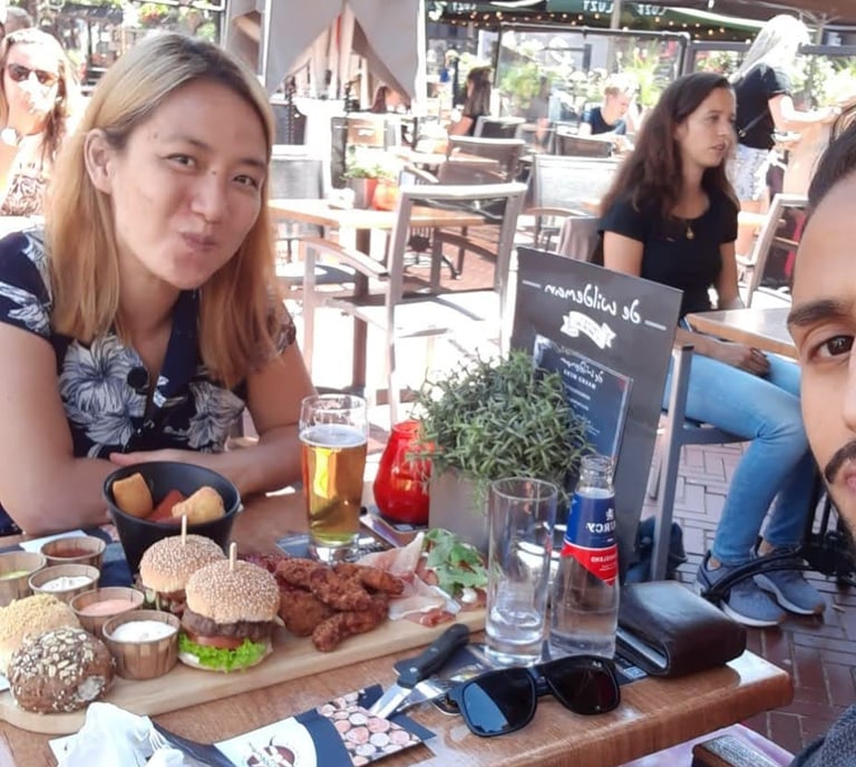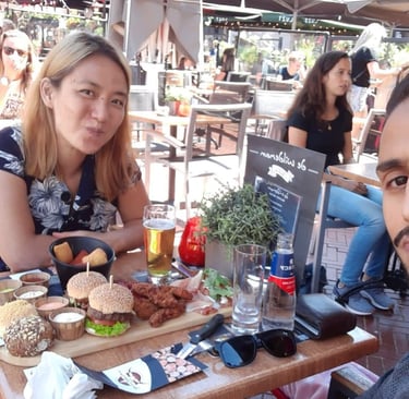 Walking around Eindoven, Elyza fell asleep in the stroller. So, we decided to seize this opportunity to say at a café and have a nice lunch. We sat down, ordered, had some drinks waiting for the food to come. Then the food came, and we had 2 max 3 bites, and Elyza woke up wailing.