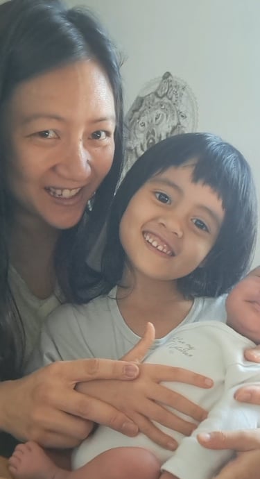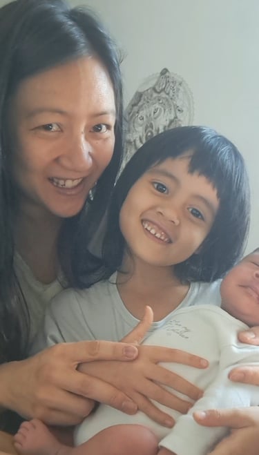 Today I held my baby sister for the first time. Mom helped me as I sat on mom's laps and mom placed my baby sister in my arms on my laps. I was so happy. I am officially a big sister who looks after her baby sister, and can now hold my baby sister.